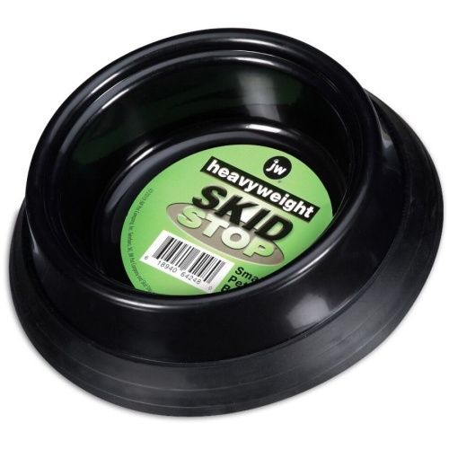 JW Pet Heavyweight Skid Stop Pet Bowls have a bottom rim of thermoplastic rubber that is designed to keep your dog from moving the bowl around the floor. Get one for water and one for food! Heavy duty plastic bowl designed to slow rapid eating.
